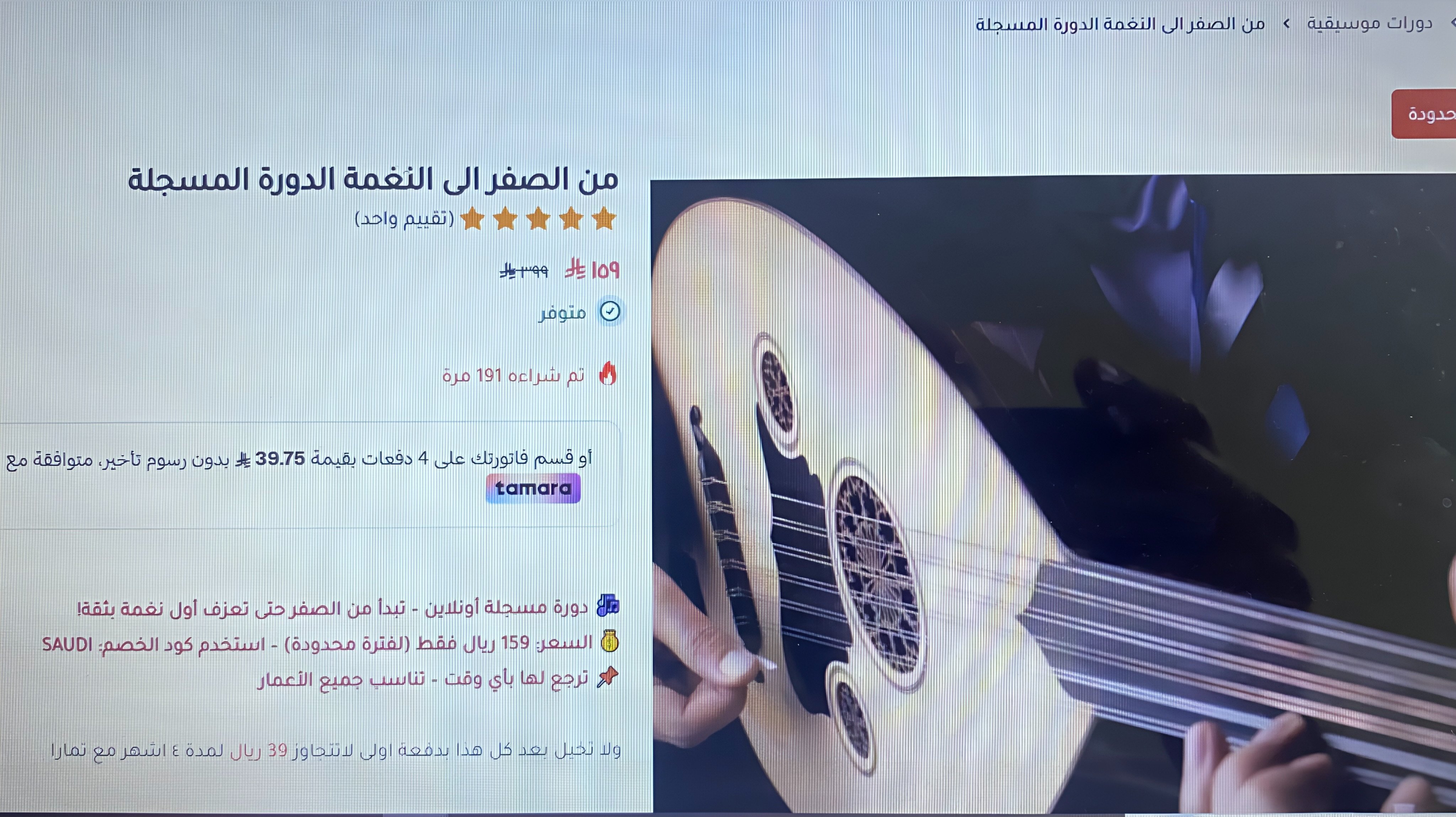 - 2️⃣ دورة تدريبية مسجّلة (خبرة +20 سنة): 🎥 تبدأ معك من الصفر خطوة بخطوة حتى تبدا تعزف